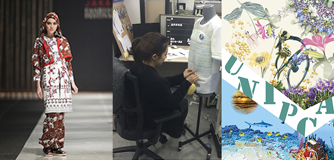 그리고 에스모드의 장점인 인터내셔널 프로그램을 통해 저는 2학년 2학기 때 ESMOD JAKARTA에서 주최하는 BATIK CREATION CONTEST에 참여 했습니다. 인도네시아의 BATIK이라는 전통 기법을 이용해 해외 에스모드 분교들이 참여하는 컨테스트로 각 팀은 한 착장을 디자인 제작하는 것이었습니다. 저는 BATIK 문양을 한국의 문양과 접목하여 새로운 BATIK원단 디자인을 개발 했습니다. JAKARTA CONTEST에 참여하면서 다소 생소할 수 있는 BATIK이라는 원단과 인도네시아의 문화를 접하며 패션과 문화, 전통에 대해 깊이 연구하는 시간을 갖게 되었고 디자인 개발뿐만 아니라 프레젠테이션과 촬영 등 다양한 체험을 할 수 있었습니다. 이런 인터내셔널 프로그램은 에스모드 학생들에게 국내에 국한 된 것이 아닌 국제적인 디자인 감각도 항상 염두에 둘 수 있도록 교육하고 있습니다.