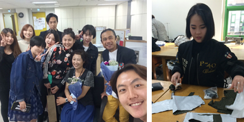 지난 2학기 때는 1,2,3학년들의 작품을 모아 전시를 하는 개교 25주년 기념 전시가 있었습니다. 저는 전시를 보면서 생각지도 못했던 새로운 소재개발, 디테일 등을 보며 함께 공부한 동기들의 작품은 물론 선배들의 작품에 놀람과 동시에 지적인 자극을 받게 되었습니다. 또한 졸업 작품전에 오신 유명 디자이너선생님들의 방문을 통해 다시 한 번 에스모드의 명성과 전통에 대해 생각하게 되었습니다.
