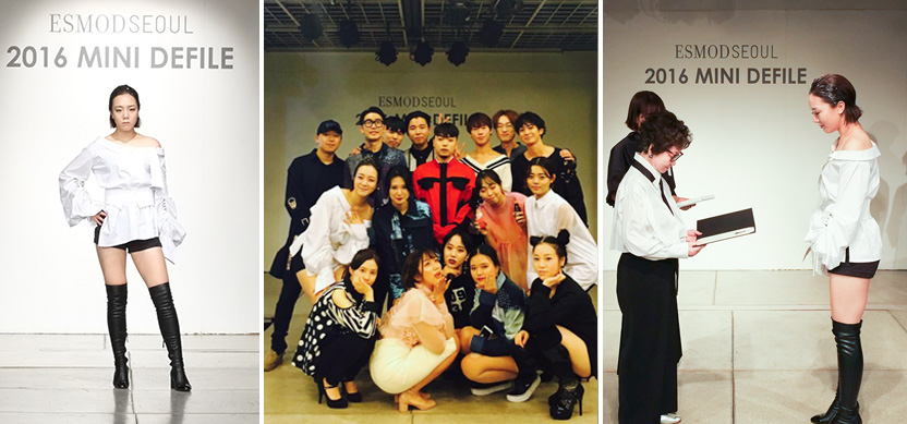 그렇게 에스모드 생활에 적응해 가며 짧은 여름방학을 마치고 2학기를 맞았습니다. 1학년 과정 중 가장 큰 행사이자 축제인 미니데필레를 준비하면서 직접 디자인 한 옷의 원단, 단추 선택에서부터 패턴 재단과 봉제 하나하나까지 전부 제 힘으로 만들어 내는 시간은 정말 즐거웠습니다. 입학 초부터 쉬지 않고 열심히 노력한 덕분에 저는 이번 미니 데필레에서 생각지도 못하게 대상을 받게 되었습니다.