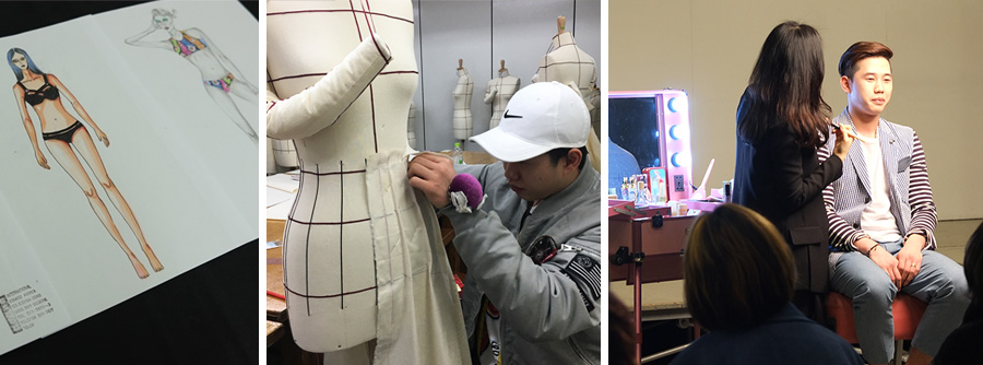 입학 후 책상에 앉아 그리기만 할 줄 알았는데 그리기 수업은 물론 디자인의 영감을 얻기 위해 자료를 조사하고 소재, 디테일, 소재개발 등 아이디어를 찾아서 연구하고 발전시키는 수업이 많아 매우 흥미로웠습니다. 저와 같은 반 친구들은 동대문시장을 제2의 고향이라고 부를 정도로 소재를 찾기 위해 매일 동대문시장을 다녀야 했고 자신이 사용하는 소재와 부자재에 대해서도 잘 알게 되었습니다.