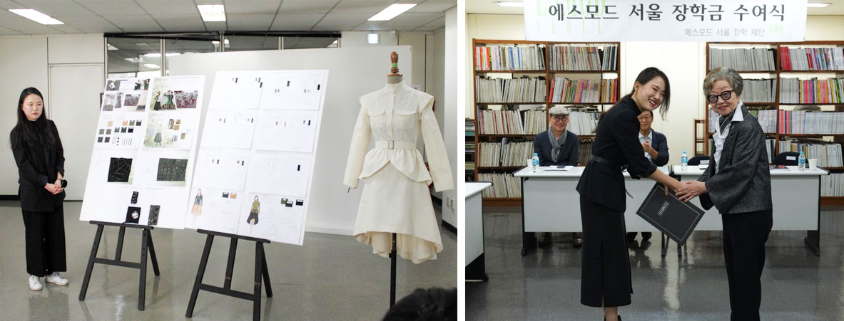 말 그대로 에스모드는 패션디자인이라는 것을 글이 아닌 몸으로 느낄 수 있는 곳이기 때문입니다. 현재 디자이너로 일하면서 되돌아본 에스모드에서의 3년은 단순히 학생의 입장에서 패션을 배우는 것으로 끝이 아닌, 디자이너로서 갖춰야 할 태도, 현 시대를 바라보는 시각, 자신의 개성을 풀어나가는 방식, 실무에서 필요한 테크닉 등 패션디자이너가 되기 위한 모든 요소를 트레이닝 해왔습니다.