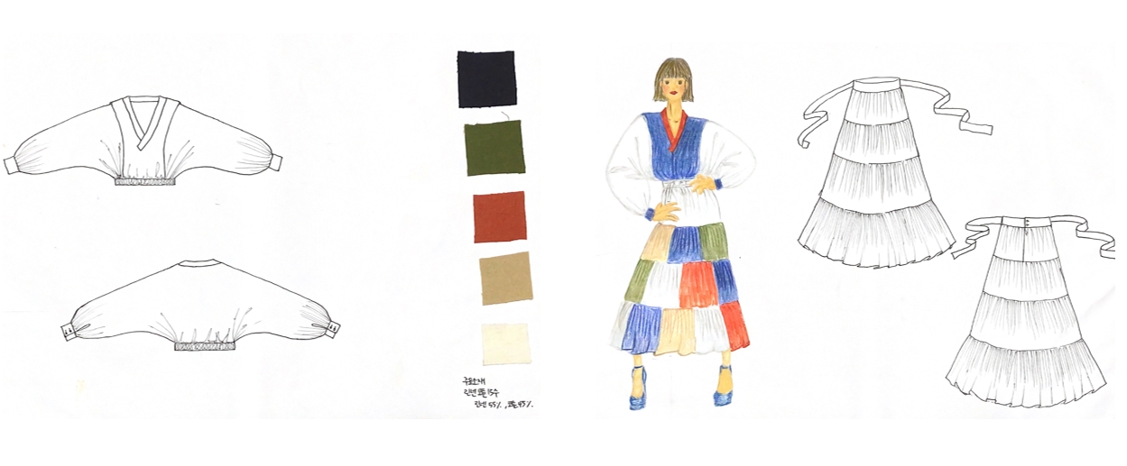 입학하고 1학년 1학기 초, 옷을 그리고 디자인하는 것이 너무 어려웠습니다. 제대로 그림을 배워 본 적도 없고, 그 동안 영감을 받아서 만들기보다 카피와 비슷하게 옷을 만들어 왔기 때문입니다. 기초부터 꼼꼼히 익혀가며 잘 안된다 싶으면 잘 그릴 수 있을 때까지 연습했습니다. 점점 빠른 손놀림으로 그림을 완성하고 컨셉에 어울리는 사진을 찾고 이미지보드를 만드는 작업이 훨씬 수월해졌습니다. 꾸준히 노력하면 못할 게 없다는 것을 깨