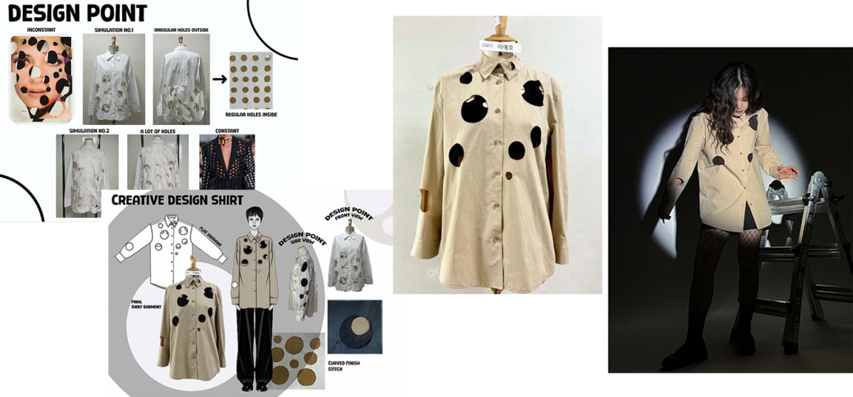 그때쯤, 운명처럼 에스모드서울 학생의 작품을 보게 됐습니다. 멈췄던 심장이 다시 뛰었습니다. 고2 때 부모님 몰래 오픈캠퍼스에 왔고, 입시 실패 후 방황하다가 마지막이라는 마음으로 다시 문을 두드렸습니다. 그리고 지금 저는 이 자리에 서 있습니다. 마치 각본처럼, 에스모드서울은 제게 ‘운명’이었습니다.