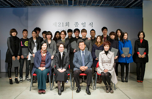 ![]() 2월 22일 본교 아르누보홀에서 2012학년도 제21회 졸업식이 열렸다. 이 날 졸업식에서는 여성복 전공 34명, 남성복 전공 31명, 아동복 전공 5명, 란제리 전공 10명 등 총 80명이 에스모드 졸업장을 수여 받았다. 3년간의 과정을 마치고 졸업의 영예를 안은 21기 졸업생은 총 80명으로 2009년 3월에 입학한 200명의 학생 중 40 퍼센트에 해당한다. 본교 박윤정 이사장과 교수진, 에스모드 서울 장학재단의 김동건 이사장과 금보라 님과 함께 학부모님들이 자리한 가운데 열린 졸업식에서 3학년 졸업생 전원은 차례로 단상으로 올라와 졸업장을 수여 받았다. 지난 12월에 있었던 졸업작품 패션쇼에서 심사위원상과 금바늘상 등 총 8개 상이 수여된 데 이어, 졸업식에서는 각 전공별 최우수상과 대상, 공로상에 대한 시상이 이루어졌다. 3년간의 학업성적, 졸업작품, 교내 활동 기여도 등을 종합적으로 고려하여 선정되는 대상은 남성복 전공 강상우에게 수여되었다. 각 전공별 최우수상은 손지민(여성복), 서민우(남성복), 박형민(아동복), 한정륜(란제리)에게 돌아갔다. 또한 3년간 교내 외 활동에 크게 기여한 학생 열 다섯 명에게는 공로상이 수여되었다. 장혜림 교장은 김난도 교수의 저서 '아프니까 청춘이다'를 인용, "열망은 힘이 세다. 세상의 잣대가 아니라 자신의 가치와 열정과 보람을 기준으로 삶을 살 수 있게 하기 때문"이라며 "2012년 현재, 각 분야에서 빛을 발하며 최고의 자리에 오른 사람들은 모두 오랜 기간 무명으로 묵묵히 일해왔다. 이들이 힘든 시간을 거쳐 성공을 거둔 이유는 자신이 좋아하고 열망하는 일을 했기 때문이다. 여러분도 처음 가졌던 패션에 대한 열정을 잊지 말고 지금 여러분의 자리에서 최선을 다해달라"고 당부했다. 졸업생을 대표해 란제리 전공 김성수 학생은 "쏟아지는 과제와 교수님 컨폼, 제출일의 압박 등으로 에스모드의 3년은 고난의 연속이었다. 하지만 같은 꿈을 가진 친구들과 함께하고 있다는 사실에 행복했고, 힘들게 만든 옷이 무대에 올랐을 때의 희열과 흥분은 그 무엇과도 바꿀 수 없는 기쁨이었다. 에스모드의 혹독한 커리큘럼, 교수님들의 무한한 인내와 격려가 오늘의 나를 만들었다. 사회생활이 쉽진 않겠지만 에스모드에서 노력했던 시간들을 떠올린다면 얼마든지 이겨낼 수 있을 것 같다"고 말했다. 졸업생 여든 명은 2009년 입학식부터 졸업작품발표회에 이르기까지 지난 3년간 동기들과 함께했던 영상을 관람하고 전 교수진과 감사 인사를 나누는 시간을 가졌다. 제21회 졸업식 부문별 수상자 명단
