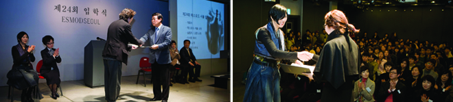 한편 입학식에 이어 2012학년도 1학기 에스모드 서울 장학증서 수여식이 진행되었다. 매 학기 선발되는 장학생은 성적, 출결사항, 학교 생활 참여도, 가정 형편 등을 종합적으로 평가하여 교직원 장학금 사정회와 에스모드 서울 장학 재단 이사진의 심사를 거쳐 최종 선정된다. 올 1학기에는 총 12개 장학금이 19명의 학생들에게 수여되었다.