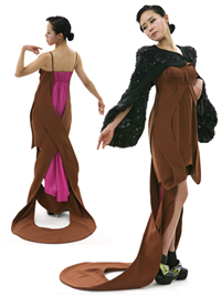 크레이프 원단의 거친 표면이 키위껍질의 질감과 비슷하다는 점에 착안해, 깎인 키위 껍질에서 보이는 부드러운 곡선을 활용한 볼레로와 드레스, 구두를 디자인했다. 깎인 키위 껍질에서 아이디어를 얻은 곡선을 절개라인으로 사용했고, 퍼를 연상시키는 블랙 소재와 트윌 원단을 패치하고 어깨에 패드를 넣어 시크한 볼레로를 완성했다. 안감에 키위 프린트를 넣어 동그란 키위의 모양을 한 소매 안쪽으로 프린트가 보이도록 했다. 크레이프 소재의 드레스는 키위껍질이 돌돌 말릴 때 보이는 자연스러운 곡선을 리드미컬하게 표현하면서 여성의 아름다운 신체 곡선이 부각되게 하였다. 드레스 뒷자락에 부드러운 핑크색 원단으로 드레이프를 넣어 우아한 컬러대비와 함께 착용 또한 편안하도록 하였다. 그린과 모노톤을 조화롭게 프린트해 구두에 사용하였으며, eva 소재로 형태를 잡아 과장되면서도 극적인 느낌을 연출했다.