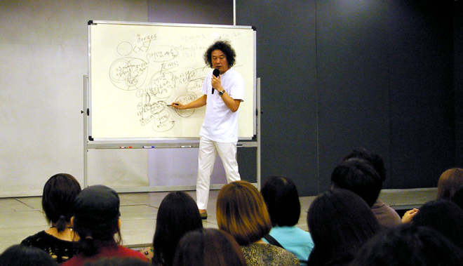 강의를 마치며 이건수 편집장은 '동양화 paradiso' 전시에 출품되었던 동서양의 재료와 방식이 결합된 작품들을 보여주었다. 호분과 돌가루를 이용한 목판 페인팅, 철판을 절삭하여 흑백의 대비를 표현한 작품, 수묵화 애니메이션, 서양의 고전 명화를 순정만화의 이미지로 그린 작품, 먹의 배체법을 이용한 색채 추상화, 한지와 아크릴 물감을 사용한 작품, 민화와 혁필화를 이용한 타이포그래피 등 학생들은 새로운 매체와 테크닉을 이용해 한국 현대미술의 지평을 넓인 작품들을 볼 수 있었다.