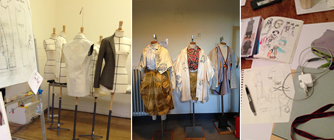 자료조사를 마치고 나는 초현실주의 작가 중 Meret Oppenheim의 작품과 클래식 남성복 자료 중에 잠옷에 해당하는 Negligee를 Jumpsuit로 결합하여 디자인을 전개go 나갔다. 반 학생들과 교수님들도 친절하게 설명해주고, 다들 신경을 써준 덕분에 데님 워크샵은 착착 잘 진행되었다. 가봉단계까지 작업을 했으나, 아쉽게도 실물제작은 크리스마스 휴가가 지난 후에 진행하게 되어 실물 제작까지는 하지 못했다. 모델리즘 시간에는 마네킹에 팔과 어깨패드 다는 법, 재킷의 기본에 대한 수업을 하고 있었는데, 서울에서 이미 배웠던 것들이었지만 내가 알고 있는 것들을 영어로 들으며 비교할 수 있어 흥미로웠다.