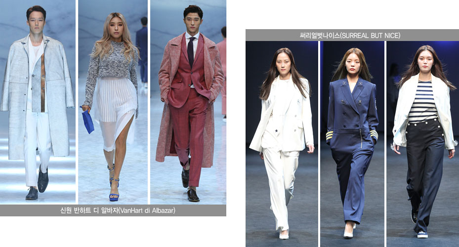 이수형 동문(2001년 에스모드 서울 입학, 2004년 에스모드 파리 졸업)이 이은경 디자이너와 함께 전개하고 있는 '써리얼벗나이스(SURREAL BUT NICE)는 이번 시즌 스트라이프와 화이트, 네이비 룩으로 통일감 있고 완성도 높은 마린 룩 콘셉트의 컬렉션을 선보였다. 군더더기 없는 깔끔한 핏과 심심함을 없앤 디테일로 귀여움을 더하는 것도 빼놓지 않았다.