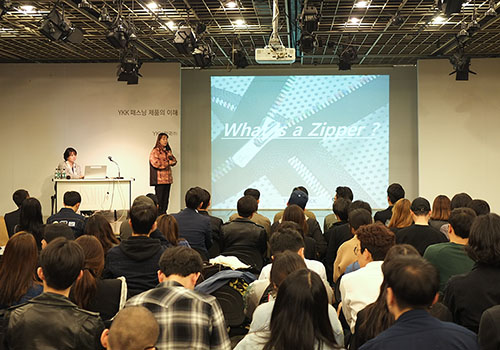이 시간에는 YKK 마케팅부 강지혜 책임과 이선영 그룹장이 자리해 지퍼에 대한 기본지식을 소개하고 YKK에서 생산하고 있는 다양한 종류의 지퍼샘플을 선보이며 각각의 활용법을 상세히 안내했다.