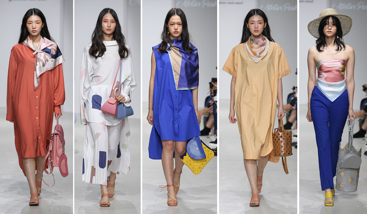 새파란 모로칸 블루와 마조렐 가든의 비비드한 컬러들은 아틀리에파크의 시그니처 라인인 ‘핸들백’과 ‘르보백’에 채색됐고, 이그조틱한 모로칸 문양은 모던하게 재해석되어 서클백(circle bag)과 클러치의 모티브가 됐다. 아틀리에파크의 백과 함께 스타일링된 실크 스카프는 그래픽 아티스트 린과의 콜라보레이션 작품이다. 마라케시의 건축과 도시의 무드가 조화된 스카프는 튜브 톱과 롱 스커트 위에 레이어링된 랩 스커트 등으로 연출되어, 도시 여자들의 여유롭고 엘리건트한 리조트 룩을 제시했다.