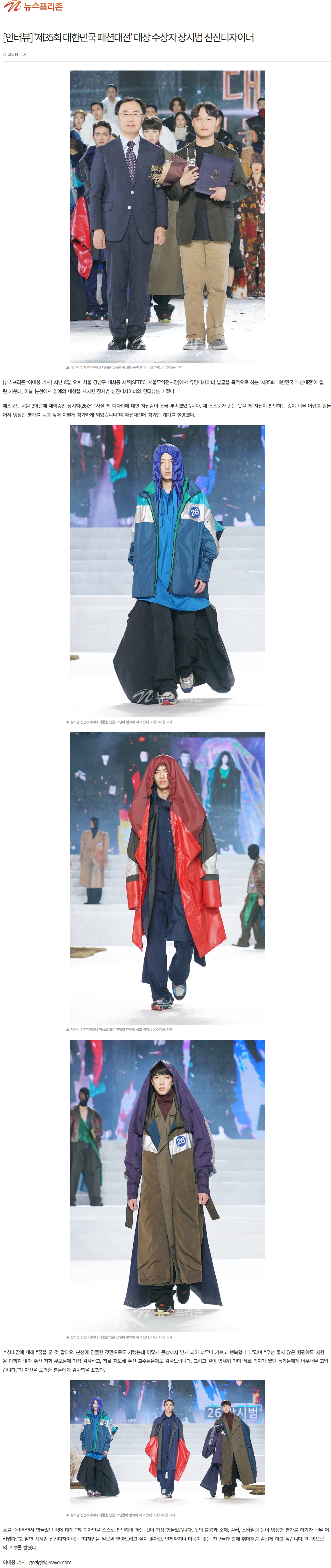 [뉴스프리존] 제35회 대한민국패션대전 대상 수상자 장시범 신진디자이너