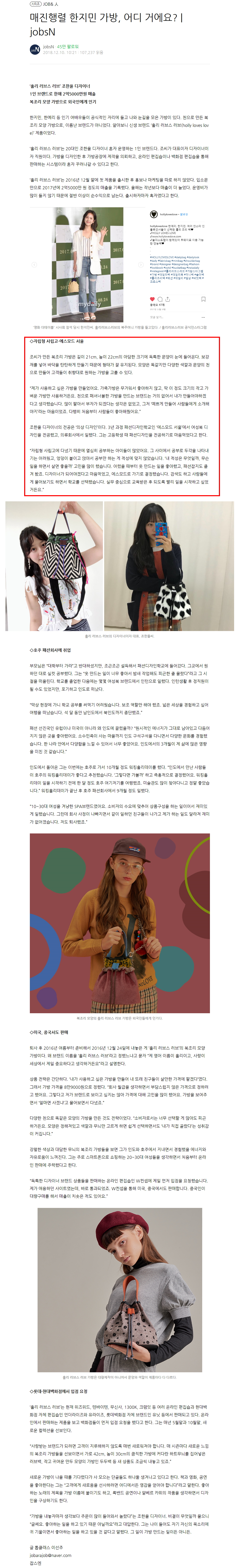 [jobsN] 매진행렬 한지민 가방, 어디 거에요?