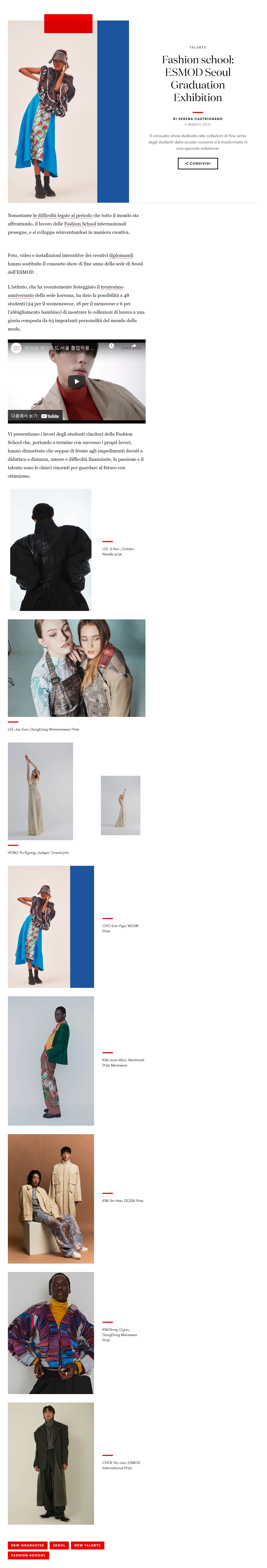 [VOGUE ITALIA] VOGUE TALENTS에 소개된 에스모드 서울 30기 졸업작품