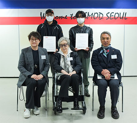 이어서, 올해 신설된 신입생 특별장학금 수여식이 진행됐다. 신입생 특별장학금의 주인공은 올해 1학년에 입학한 채준우 학생과 정우진 학생으로, 이들은 지난 2022 고교패션컨테스트에서 각각 '에스모드서울재단상'과 대상인 '문화체육부장관상'을 수상했다.