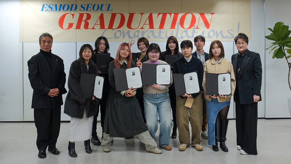 2월 16일, 에스모드 서울 제33회 졸업식이 개최됐다. 올해는 여성복 전공 17명, 남성복 전공 14명, 아동복 전공 7명, 총 38명의 학생이 에스모드 서울의 패션디자인과정을 모두 마쳤다.