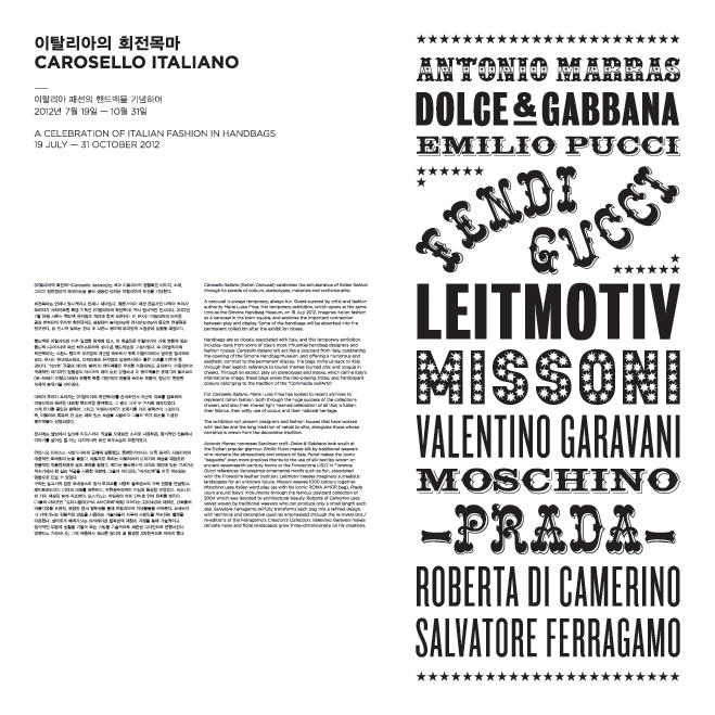 박물관 내 한 층을 추가하여 특별전을 기획했다. 첫 번째 특별전, 이탈리안 회전목마 (Carosello Italiano)는 전 세계 여러 박물관과 개인 소장품 대여로 구성했다. 큐레이터이자 패션아티스트 마리아 루이사 프리사가 게스트 큐레이터로 진행하며 구찌, 페라가모, 펜디, 베르사체, 미소니 등 다양한 브랜드로 구성된다.