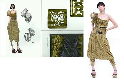 에스모드의 국제네트워크를 통해 다양한 콜라보레이션 기회가 있었습니다. 인도네시아의 전통 염색기법인 바틱을 이용한 프로젝트와 일본 니케사와의 콜라보레이션이 기억에 남습니다. 바쁜 학과 공부와 병행하느라 힘들기도 했지만 국제적인 감각과 좋은 소재를 이용한 작업을 경험해 볼 수 있는 기회이기도 했습니다.