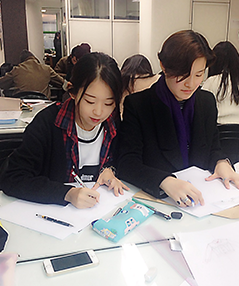 이제서야 내가 제대로 된 공부를 하고 있다는 생각과 내가 만들었다고 말할 수 있는 결과물들이 눈에 보였기 때문입니다. 원단시장을 돌아다니며 마음에 드는 원단을 골라 실물 제작을 해보는 것부터 시작해서 직접 디자인은 물론 디자인의 발상부터 어떻게 표현 할 것인지, 프린팅과 소재개발 등을 연구하고 실루엣을 정하고 패턴을 구성하고 가봉과 수정을 반복하며 완성하기까지 매 분기별로 새로운 것들을 익히며 배우기에 바쁘지만 디자인의 기초부터 다양한 기법들을 배우는 시간들이 참 재미있습니다. 디자인의 기초도 몰랐던 여러분들께서도 이 과정들을 거쳐 무에서 유를 창조하는 과정에 직접 참여를 하게 된다면 정말 벅찬 감동을 느끼실 수 있을 겁니다.