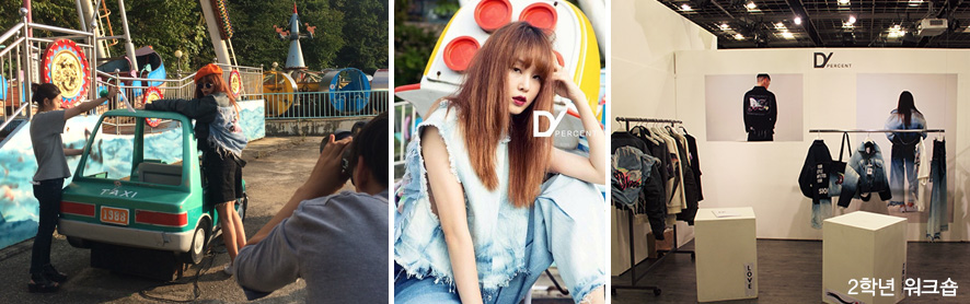 저희팀은 D PERCENT라는 브랜드명으로 2015년도의 트렌드 중 하나인 데미지 데님을 한국적으로 유쾌하고 트랜디하게 풀어내는 컨셉으로 작업을 했습니다. 이 프로젝트가 제 기억에 많이 남는 것은 브랜드 론칭 과정을 체험하는 것도 있겠지만, 다른 색깔을 가진 팀원들과의 의견 조율과 또, 같은 패션을 하더라도 각자 풀어내는 디자인은 다르기 때문에 그 다양성을 포용하는 법을 많이 느꼈기 때문입니다. 데님이라는 소재의 특수성 때문에 데님을 찢고 워싱하는 과정이 어려워, 몸도 상하고 마음처럼 되지 않아 울기도 많이 울었지만, 그렇게 힘들게 디자인하고 제작한 작품, 아니 상품들을 직접 판매 해보면서 구매자들이 내 디자인을 얼마나 관심 있게 보는지, 어떤 것을 좋아하는지를 느끼며 소비자들과의 소통을 배울 수 있어 뜻 깊은 시간이었습니다.