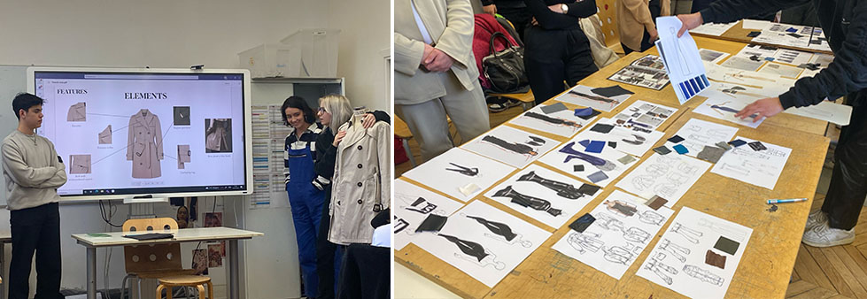 이 곳 스틸리즘 수업에는 캐주얼 스포츠웨어 컬렉션 프로젝트가 있었다. 한반에 30명의 학생들이 공부하는데, 이 프로젝트는 그룹 작업으로 진행되어 5-6명이 하나의 조를 이룬다. 조 별로 컨셉을 정해서 제시하면, 반 전체가 의논하여, 이 중 반을 대표하는 하나의 컨셉을 선정한다. 대표 컨셉에 맞춰 무드맵과 디자인을 전개하면서 반 전체가 이에 대해 회의하며 디자인 피드백을 주고받는다. 이러한 과정을 거쳐 컬렉션 맵을 만들고, 실물을 제작하여, 하나의 컬렉션 라인으로 쇼까지 진행한다.