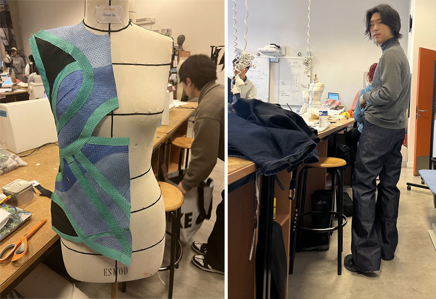 첫 수업은 티셔츠 도식화 수업이었다. ‘블라인드 티셔츠’라는 이름의 이 수업은 티셔츠 도식화를 한번 그린 다음 똑같은 티셔츠 도식화를 눈을 감고 그려야 했다. 틀을 벗어난 창작과정의 실험으로써, 기본티셔츠를 기발하게 디자인해보는 수업이다. 눈을 감고 그리니 당연히 제대로 그리기 힘들었다. 통합수업으로 진행돼 함께 수업한 패션비즈니스 클래스 친구들의 도식화는 정말 이상해 서로 한참을 웃었다.
