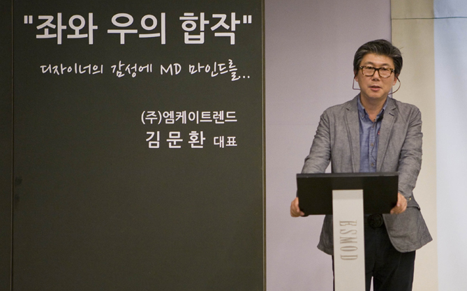 지난 6월 14일 2학년과 3학년 학생들을 대상으로 엠케이트렌드 김문환 대표의 특강이 열렸다. ‘좌와 우의 합작’이라는 제목의 특강을 시작하며 김 대표는 “패션 디자이너나 예술가들은 시각적 요소가 강하고 감각적, 직관적, 창의적인 사람이 많으며 통상 우뇌가 많이 발달해 있다. 이처럼 발달된 우뇌에 체계적이고 논리적이며 수리적인 사고를 하는 좌뇌의 기능을 더해 시너지 효과를 극대화하는 것이 최근에는 더욱 중요해졌다”고 말했다.