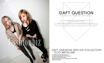 다프트퀘스천(대표 김효진 최혜지)의 공동 대표이자 디자이너인 김효진(27)&최혜지(25)씨는 2012 S/S 시즌 런칭 첫해 '에코-메탈리즘(ECO-METALISM)'이라는 주제로 무심코 지나쳐 버린 것들 속에서 피어오르는 아름다움을 선보이고 있다.