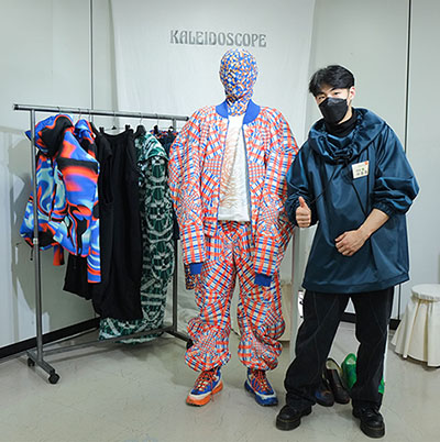 이윤후 학생의 「KALEIDOSCOPE」은 컬렉션 제목을 뜻하는 만화경에서 출발했다. 보는 각도마다 다르게 보이는 만화경처럼, 조형적인 요소들을 다양하게 매치하고 각기 다른 문양을 넣어 플레이함으로써, 자유로운 DIY개성을 표출하고 유니크한 개성을 표현했다.